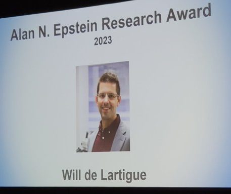 – Dr de Lartigue is awarded the Alan N. Epstein Research Award at the annual meeting of the Society for the Study of Ingestive Behavior (SSIB). Professor Epstein was a professor at the University of Pennsylvania, a distinguished researcher in the field of ingestive behavior and a President of SSIB. The award, endowed by his family in his name, honors a researcher for a ‘specific research discovery that has advanced the understanding of ingestive behavior’. The award was presented at the SSIB annual meeting in Portland, Oregon
